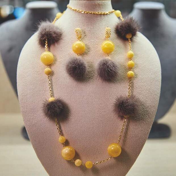 Украшения с мехом норки Янтарный комбинат создал в качестве эксперимента специально к VIII Международному янтарному форуму в Москве. Технологи предприятия разработали серьги, браслеты, колье-воротники, кольца и броши с различной комбинацией янтаря и меха — всего 30 моделей. На форуме представили по пять образцов каждого вида. Все новинки с меховой отделкой были проданы, а на некоторые позиции поступили предварительные заказы.